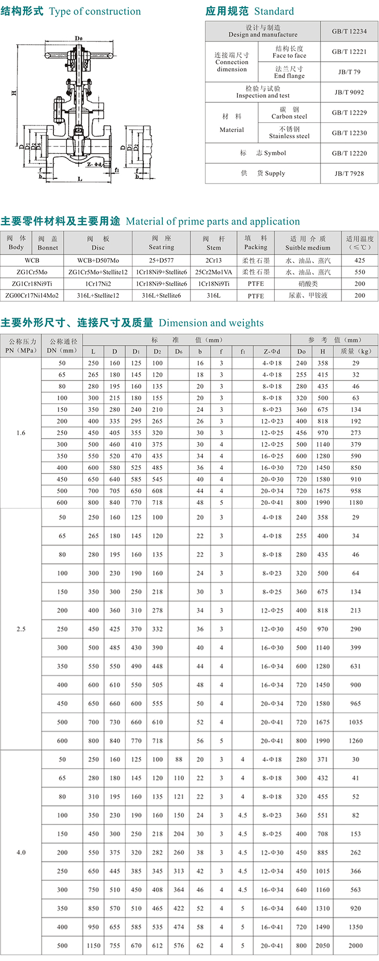中、高壓法蘭楔式閘閥